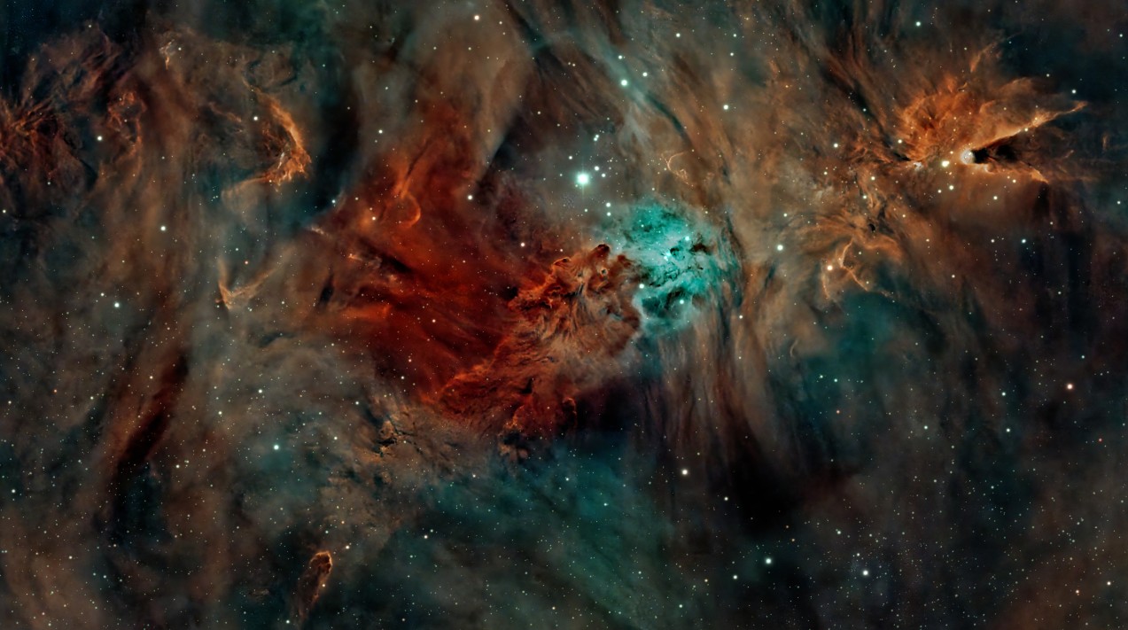 NGC 7822 is a bright emission nebula in the constellation Cepheus, about 3,000 light-years away. It’s a region of active star formation, filled with glowing hydrogen gas, dark dust lanes, and young hot stars that sculpt the nebula with their intense radiation. The area is sometimes called the “Cosmic Question Mark” because of its curved shape in wide-field views.